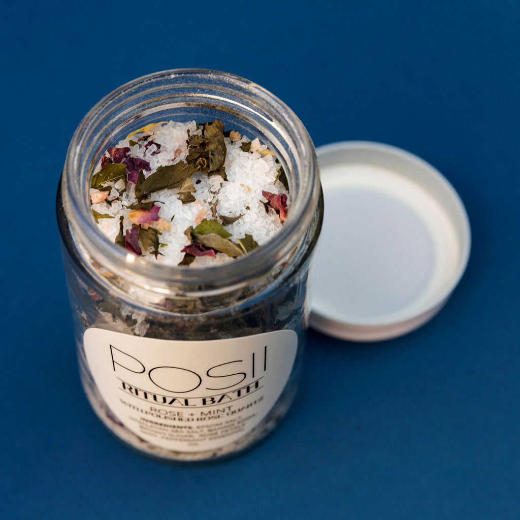 AMETHYST: Peace + Healing + Balance + Protection. Calming the mind release from anxiety + depression. Each jar complete with polished amethyst for added healing, to be removed when soak is finished and displayed as a keep sake.