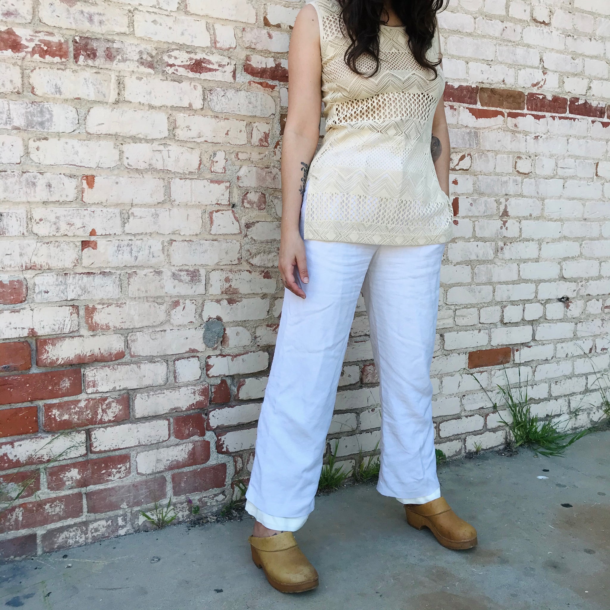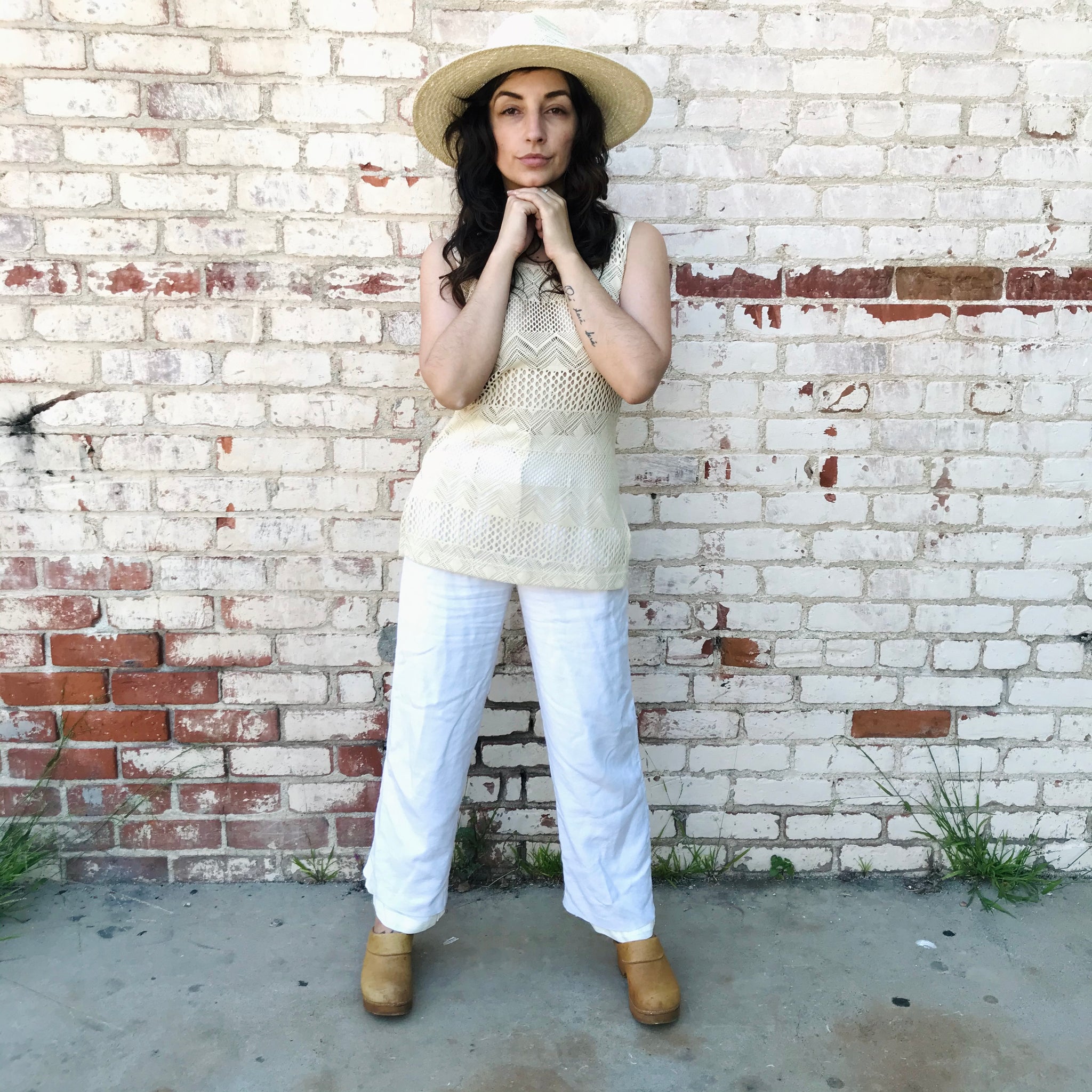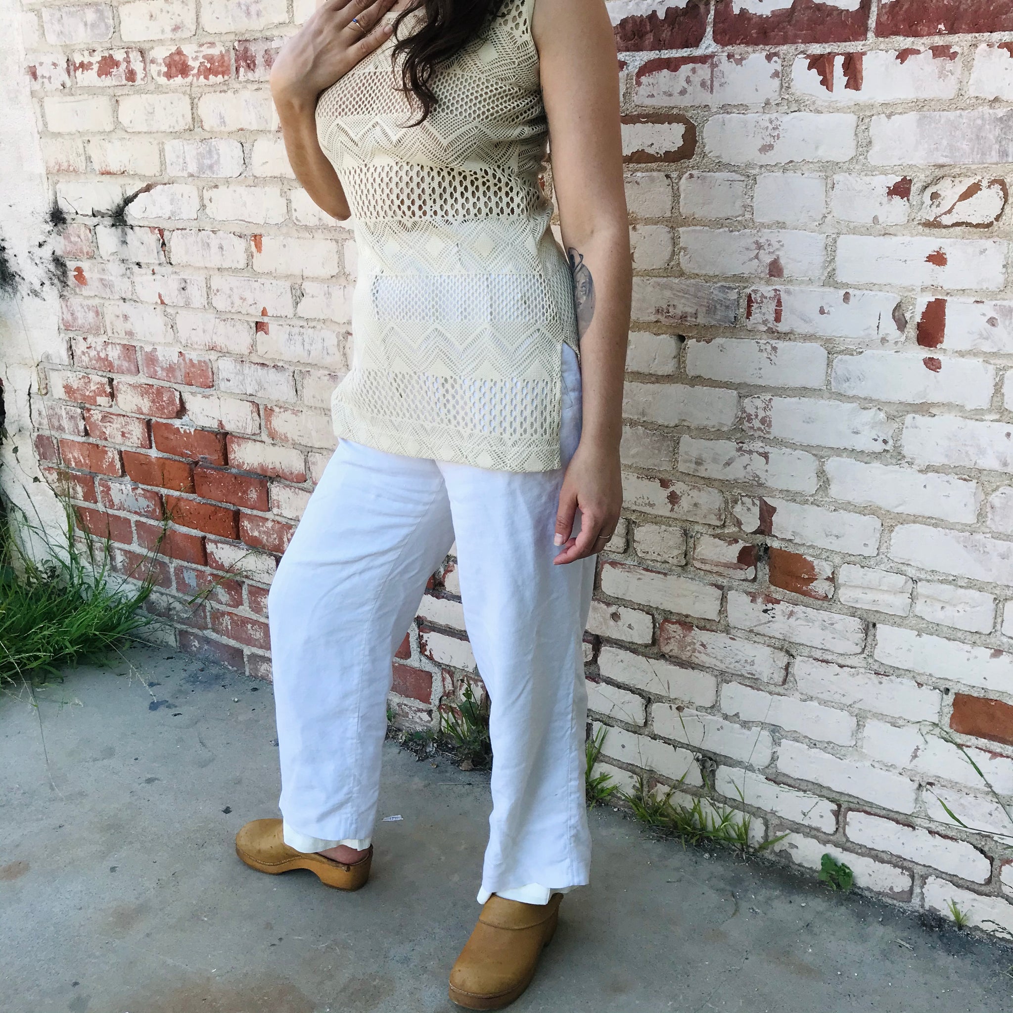 Cream knit tank coverup perfect for covering up at the beach or pool side. Gorgeous shear style with slits on side. Pair with linen pants or cutoff shorts with a bralette for a summer vibe. Don't forget the big sunglasses!