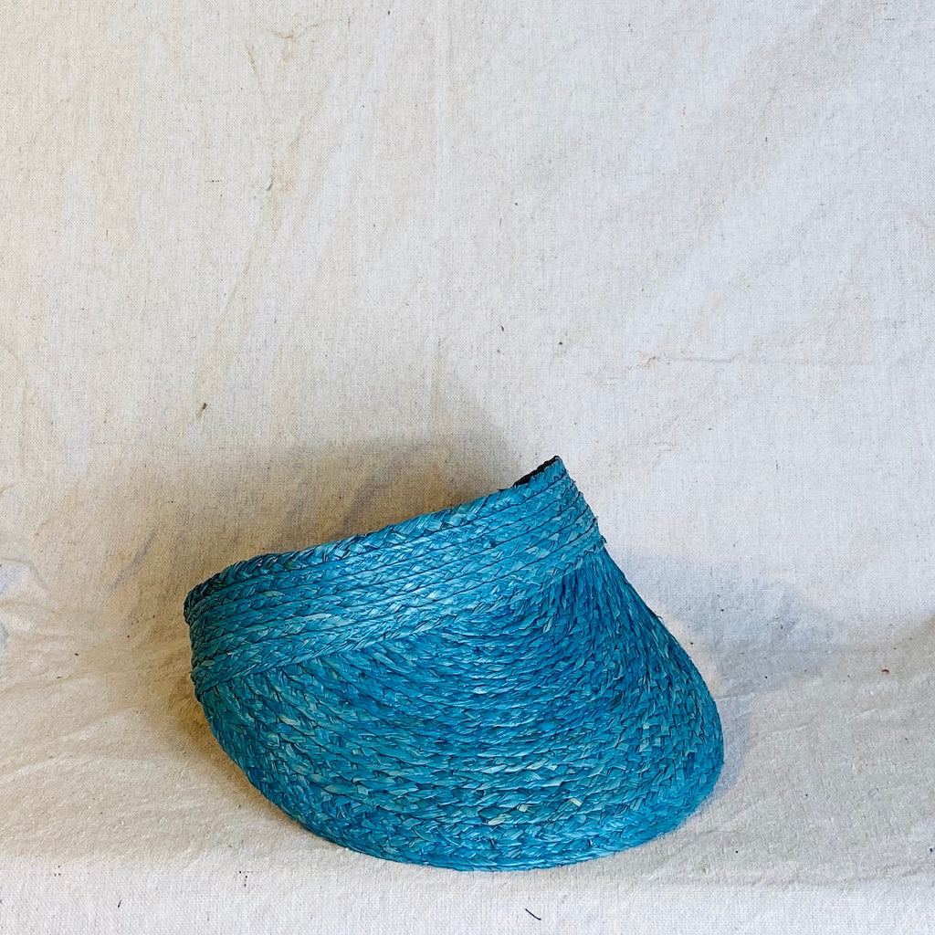 This visor is the perfect way of saying, "Spring is here!". Straw material in blue, tan and brown.